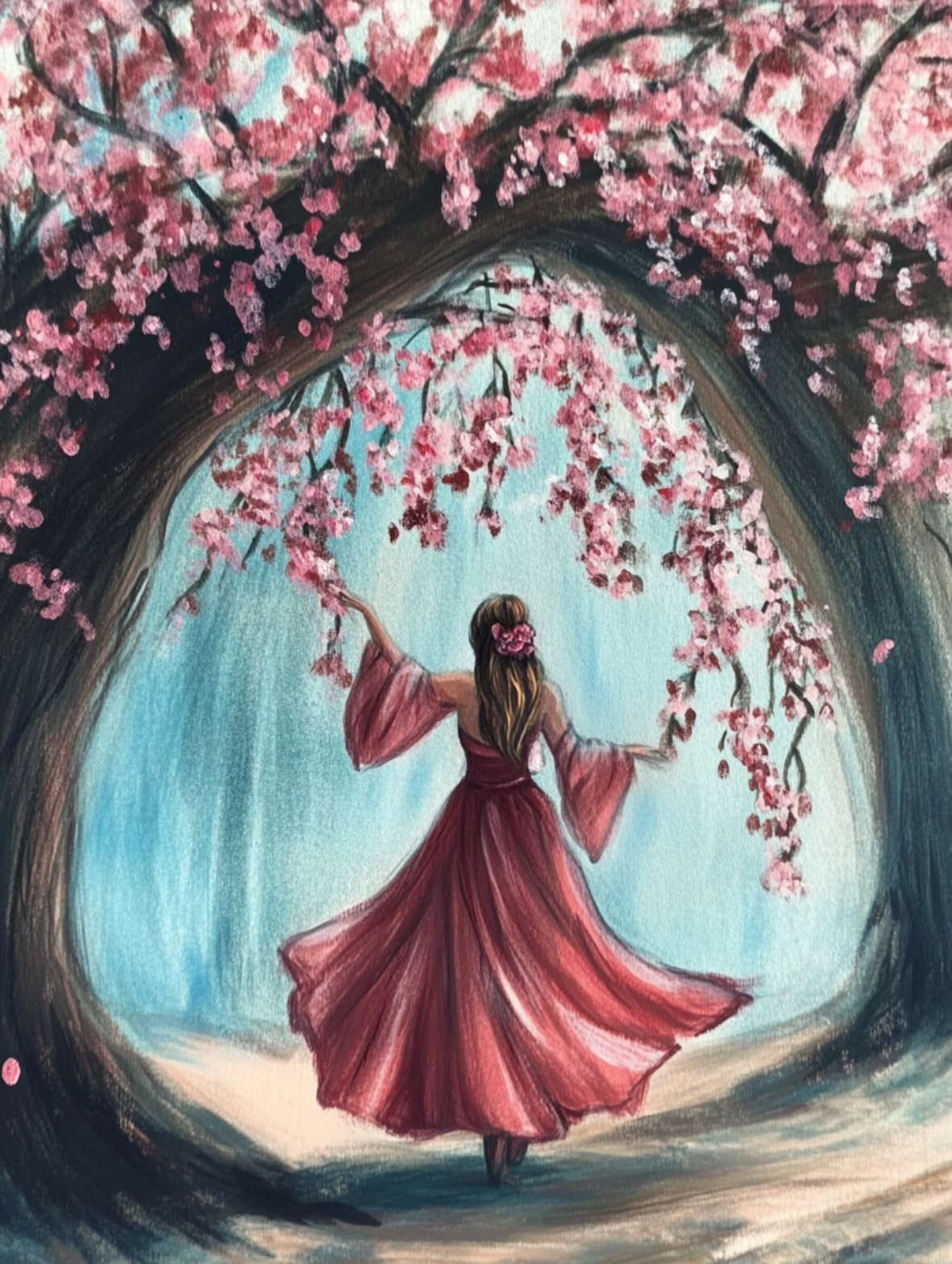 The Dance of the Cherry Blossoms – 60x80cm Diamond Painting Kit | Square Resin or Round Acrylic Drills